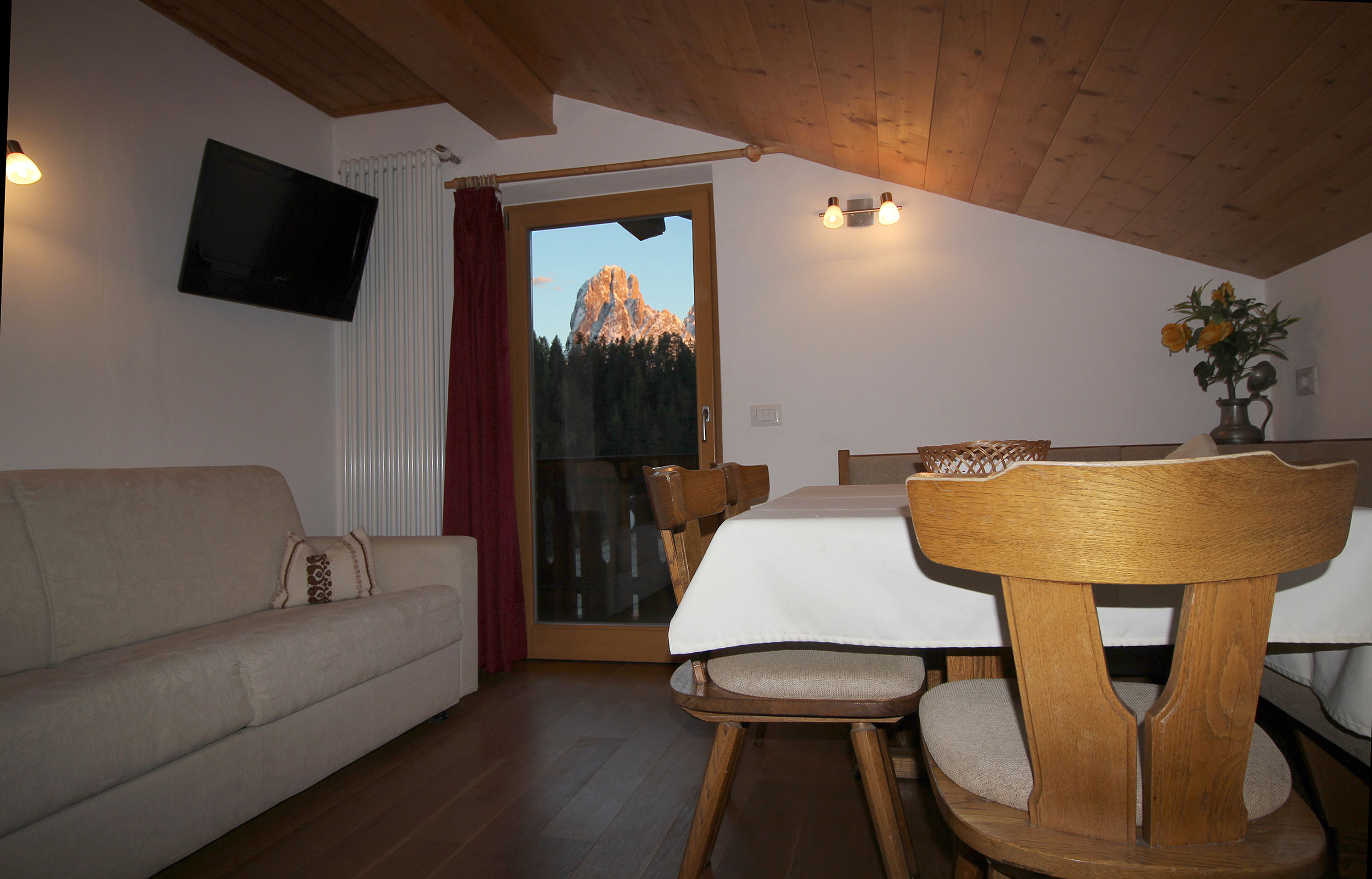 Cuca is an attic apartment with the warm and welcoming typical style of wood, with a large south-facing balcony, is composed of: