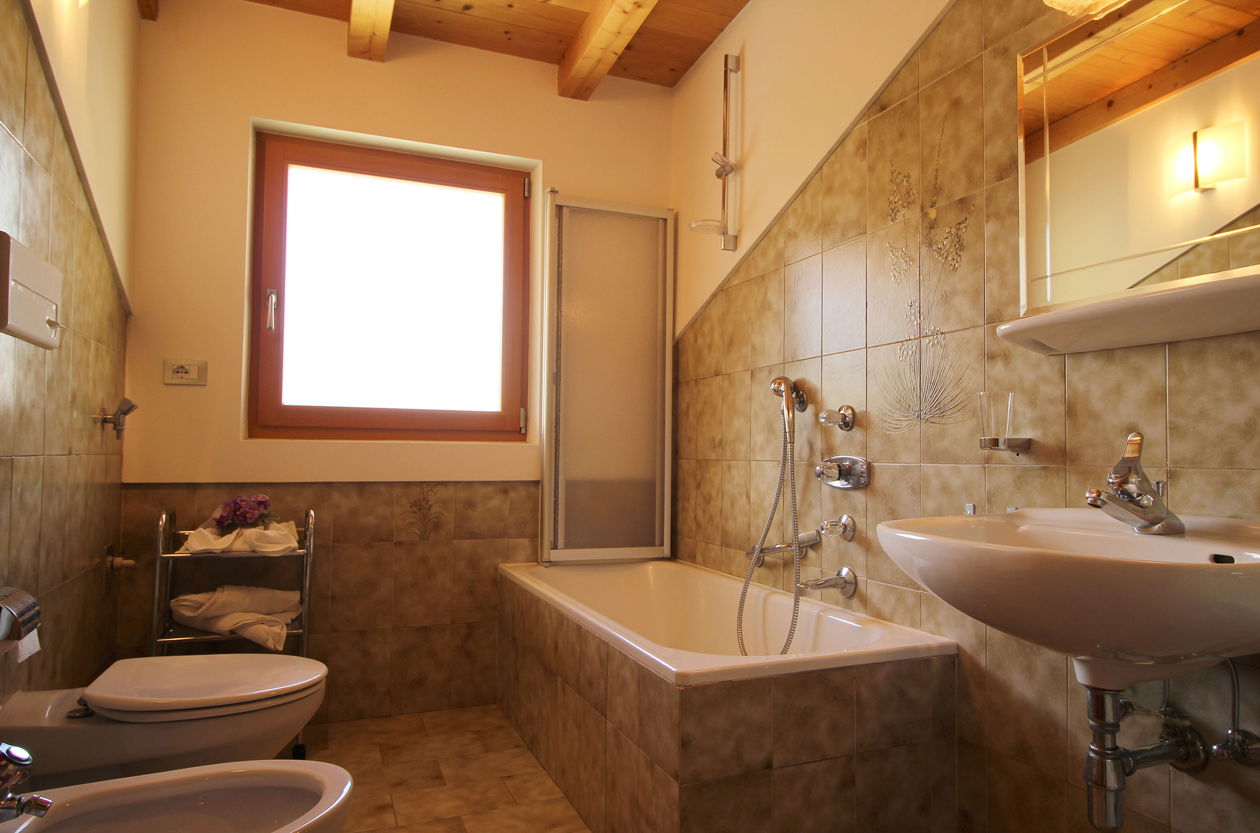 • Bathroom with shower, WC, bidet, washbasin and hairdryer