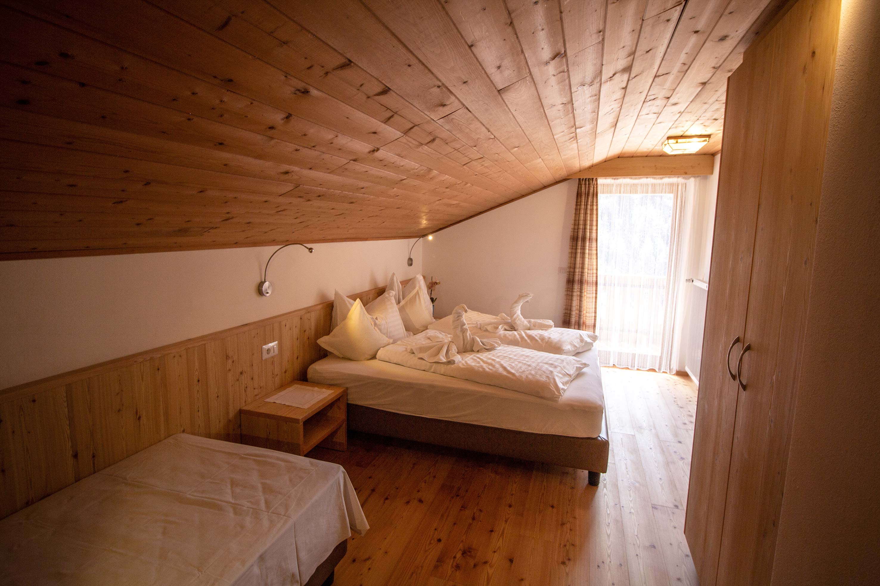 • Geräumiges Doppelbettzimmer mit Zusatzbett und Südbalkon