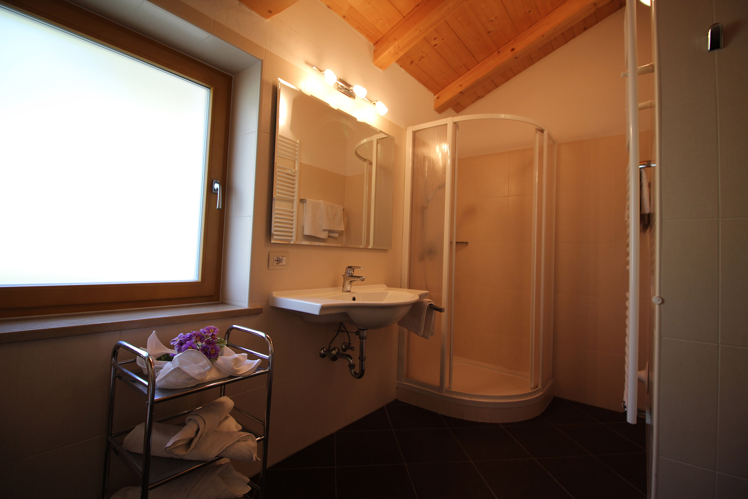 • Badezimmer mit Dusche, WC, Bidet, Waschbecken, Bodenheizung und Handtuchtrockner